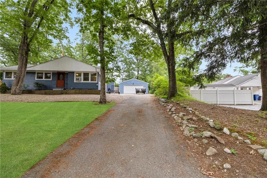 Here is your chance to own in EG. Situated in a quiet East Greenwich neighborhood that offers easy access to your favorite spots--work, shopping, dining, recreation, marinas, and beaches. You'll love the large private, wooded fenced lot and oversized two-car garage with plenty of off-street parking. Its entry mudroom and first half-bath open to your grand-sized bonus room which connects you to your open concept, living, dining, and new kitchen. Cozy up in the winter with your wood-burning fireplace. Down the hall, enjoy three bedrooms and one full bath. As you travel downstairs, you'll find your laundry, storage space with a walkout bulkhead, plus your second large bonus space with its own wood-burning fireplace and second half-bath. Updates include kitchen, bath, new roof, and new gutters with Shur Flo gutter guards. This custom-built ranch home offers move-in-ready convenience with the opportunity and space to create your dream home. Come explore this one-of-a-kind ranch and envision your future here.