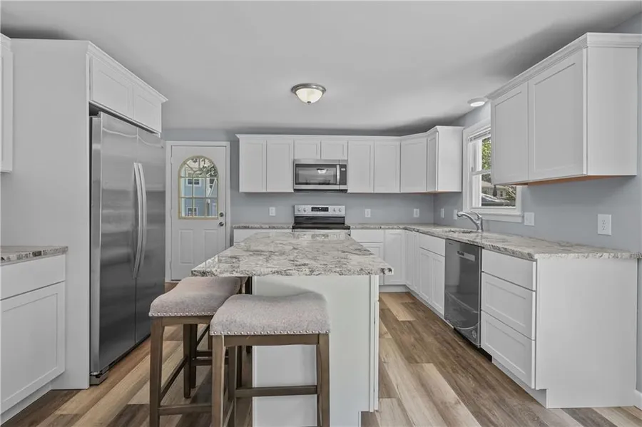 33 Linwood Dr in Coventry is a stunning property that combines modern comfort with classic charm, situated in a quiet and desirable neighborhood. This homes exterior is well-maintained, with a tasteful color scheme and attractive details that give the house a welcoming presence. Upon entering, you are welcomed into a bright and spacious open-concept living area. The living room is filled with natural light from large windows. It features gleaming hardwood floors and plenty of space. The kitchen is a chef's dream, boasting modern stainless steel appliances, granite countertops, and brand new white shaker cabinets. An island provides additional counter space and seating. The thoughtful layout ensures plenty of storage and functionality, catering to all your culinary needs. The home includes 3 well-sized bedrooms, each offering comfort and privacy. All 3 bedrooms are equally inviting, with ...