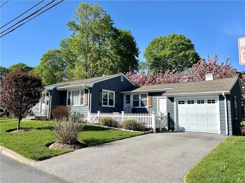 Gorgeous rental on The Hill in East Greenwich! Beautifully updated one-level home in excellent location with central air, hardwoods throughout! Attached garage leads to spacious entry/mud room, dining room with vaulted ceiling, large kitchen with stainless appliances, huge living room with excellent natural light, formal entry with two coat closets! Two generous bedrooms, modern updated bath with window in the shower. Finished basement is newly painted with additional full bath and several rooms for expanded living space, laundry room with washer and dryer! New windows, efficient utilities. Front patio to relax and watch the sunset, small deck in back for grilling. Across from Eldredge elementary school with new walking path and amenities! Walk to all that Main Street has to offer: restaurants, nightlife, yoga, shopping, library, playgrounds, ice cream, waterfront with kayak rentals, etc! One year lease, pets negotiable (no cats), no smoking. Tenant responsible for: oil heat, electric, cable/internet, snow removal. Landlord responsibility: water, sewer, landscaping!