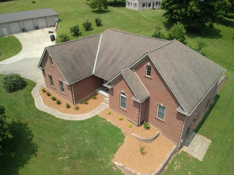 Custom Brick Ranch has 4/5 Bdrms, 3 Full Baths, Over 3800 Sq Ft of finished living space. Kitchen w/Maple Cabinets & Granite Counters and Counter Bar open to Graet room living / Dining area, Hardwood Floors, 2+ Acres, Covered & Open Patios. Finished Lower Level Fam/Rec Room w/Full Kitchen, Walkout, & Bonus Safe Room! Plenty of Room all your outdoor power equip or storage, 3 Car Attached Garage, 64x30 insulated & heated Garage w/4 10x10 Doors, 9000# 2 pole lift, compressor and piped for air, plus substantial outside parking area.