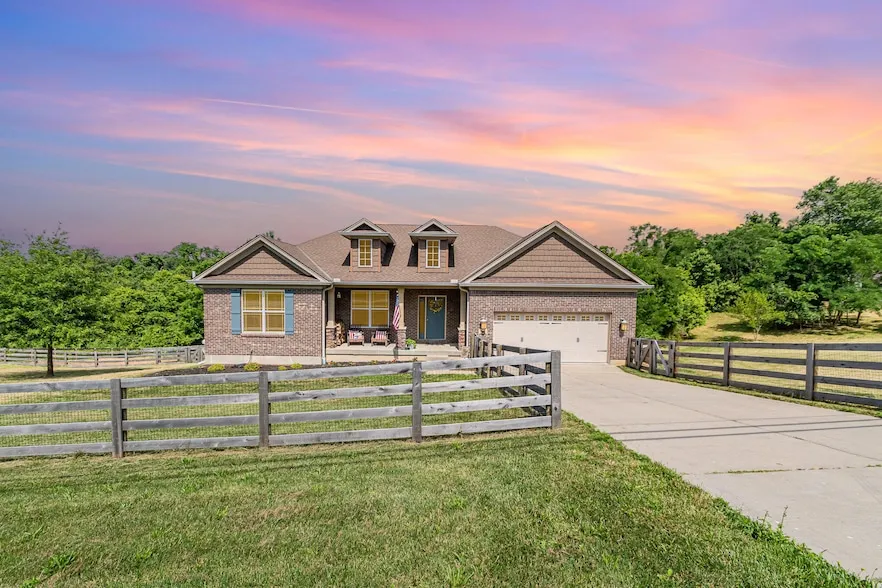 Discover the perfect blend of comfort, space, and privacy in this beautifully maintained 4-bedroom, 3-bath ranch situated on 3.9 acres in the heart of Independence, KY. Just 11 years young, this home offers modern construction with timeless charm. Inside, you'll find an open floor plan, newer carpet, fresh paint and a whole-home carbon water filtration system for added peace of mind. The spacious bedrooms and finished lower level offer flexibility for guests, entertaining, or multigenerational living. Step outside to enjoy the fully fenced property, perfect for pets or play, with a separate garden area ready for your green thumb- yard is also perfect for sheep, goats, chickens or turkeys. Just add your livestock and go. . Enjoy the peace of country living with the convenience of nearby shopping, dining, and schools. This is the rare blend of modern comfort and rural tranquility you've been looking for!