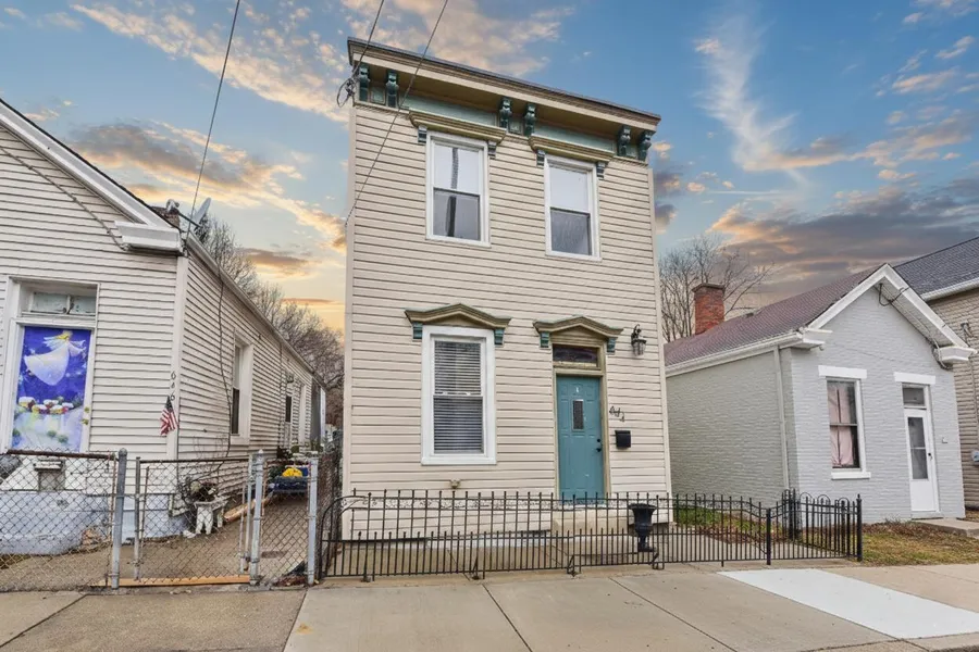 Charming 3-bedroom, 2.5-bath home offering 1,412 sq ft of updated living space. Custom kitchen features 42'' cabinets, island, granite countertops, and black stainless steel appliances. First-floor primary suite with 10' ceiling and designer bath including spa-style shower, and double vanity. Spacious living and dining areas with a convenient half bath featuring barn door. Two additional bedrooms upstairs share a Jack-and-Jill bath with tub/shower combo. Fresh carpet, paint, and refinished original hardwood floors. Ample off-street parking off back alley. Conveniently located near park, Mainstrasse, and Cincinnati.