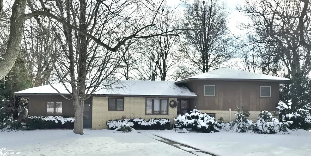 This well-built estate home sets on a beautiful double corner lot surrounded by mature trees offering great space, flexibility, and classic curb appeal with its brick-and-wood exterior. The main level features a bright living room, large kitchen/dining area, and a convenient half bath. A few steps up are three comfortable bedrooms and a full bath. The lower level includes a cozy family room with fireplace, laundry room, and a versatile fourth bedroom with its own outside entrance-perfect for a home office or in-home business. The basement provides even more potential, offering both an unfinished storage/living area and a utility/workbench space. This home is ready for any of your updates and personal touch. Come see this great opportunity in a wonderful community!