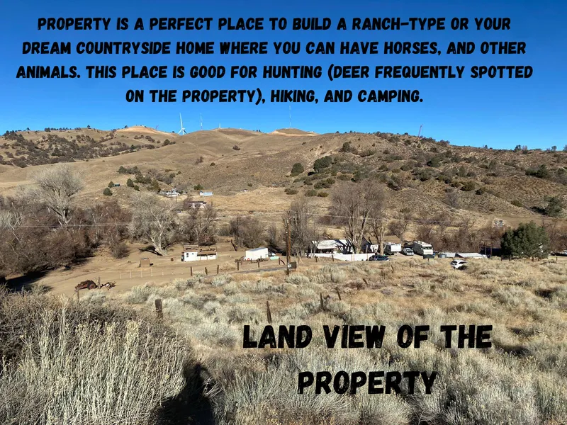 This lot is almost 8 1/2 acres in size with 2 flat pads that have been graded and a natural water spring that is producing plenty of water. The lot would be great for a two-home setup or there is plenty of room for horses and a workshop. The lot has great views with power nearby but a well, septic, and propane would be needed if building. With windmills nearby, this could become an investment property in the future, great for a land lease. Lots of potential with this lot and it would get you away from the city and could give you a green/sustainable way of life.