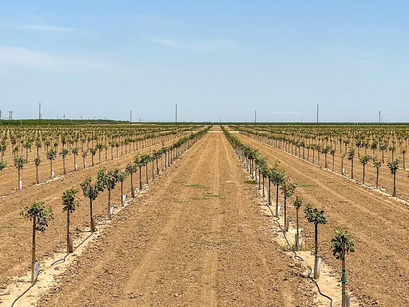 This offering consists of 156.86 +/- gross acres of young pistachios that were planted in March of 2022 with multiple sources of water to include a Class 1 contract to receive surface water delivery for all assessed acres from Semitropic Water Storage District (SWSD), and groundwater supplied via two (5) on-site irrigation wells.