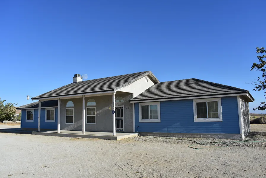 Great 3 bedroom 2 bath custom home on 2.35 acres of horse property with awesome views of the desert and rock formations. New interior paint and carpet, vaulted ceilings, extra large 2 car garage, dog run, additional sunroom, and a large patio slab. Located in a very peaceful & scenic area of rural homes, but just minutes from stores, schools, and Edwards Air Force Base in Rosamond.