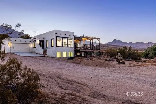 Experience the beauty of country living in this stunning Spanish-style home, perfectly nestled on 5 acres of tranquil land. This split-level gem boasts expansive windows that frame breathtaking, unobstructed views of the city skyline, bringing the outdoors in and flooding the interior with natural light. Designed for both relaxation and entertaining, the home features a large deck that extends from the main living area and primary suite, offering a seamless transition from indoor to outdoor living. Whether you're enjoying a quiet morning coffee or hosting a sunset dinner, this space provides the perfect backdrop. For equestrian enthusiasts, the property includes large horse corrals, allowing you to care for and ride your horses in the comfort of your own land. A spacious storage shed provides ample room for all your tools, equipment, and outdoor gear. Located just minutes from Highway 14, this property combines convenience with seclusion. With minimal neighbors, you'll enjoy peace and privacy while still being close to modern amenities. The views here are unparalleled, stretching for miles and offering a daily reminder of the natural beauty that surrounds you.