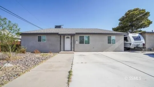 Charming home conveniently located in downtown Ridgecrest - fully renovated in 2022! Renovations are extensive and include - new roof, new dual pac heating/air conditioning, New windows through out of the home. New attic insulation, fresh exterior & trim paint, new wall insulation, new electrical service panel, new electrical wiring, new outlets & fixtures, new plumbing & fixtures and more! Interior was newly drywalled and textured, as well. All new cabinetry with quartz countertops installed in the kitchen, bathrooms and linen storage area. Custom tile was installed surrounding the hall bathroom tub and primary bathroom shower stall. New stainless steel appliances installed in the kitchen. Lifeproof plank flooring installed throughout the house is waterproof. New gas water heater. Indoor laundry room located off the dining room. Ceiling fans in all bedrooms. Front yard provides ...