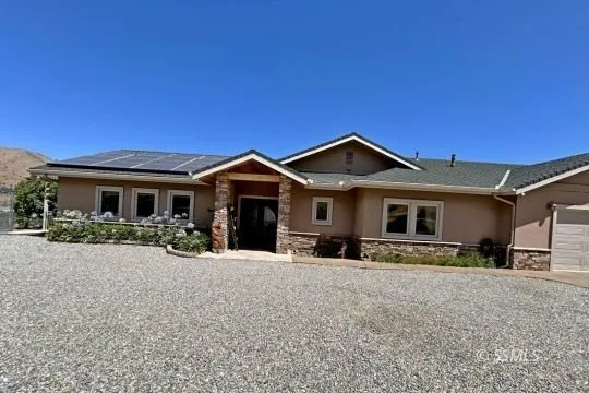 Set atop a hill amongst the clouds where eagles soar with million-dollar views. Nothing was spared in this custom build. Built with intent and function for those expecting luxury & comfort with views from every room. Open that artistic glass Sun entry door for the spectacular lake view. Inside warm up to the floor to ceiling stone fireplace, knotty Alder custom doors, cabinets and entertainment center with surround sound. Enjoy the Chef's kitchen including island with storage, granite counters, commercial Viking stove, pot filler, copper sink. Home features primary bedroom with ensuite bath with 2-sided fireplace, Bidet, walkin shower and jetted spa tub, toe warmers. Primary bedroom has fireplace, sitting area and custom closet organizer. Two large bedrooms, one without closet plus office/ workout room. Don't forget PAID solar, 2 tankless water heaters and attic storage. Laundry off primary suite includes custom cabinetry with 3 laundry pull out drawers, ironing board and laundry sink. 3 car garage with one side load, RV barn, boat barn and shed to store those toys & more!! This is a must see!