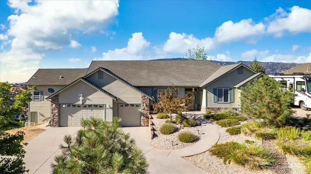 Your Hilltop Haven! Perched on 3.86 private acres in the beautiful, gated community of Bear Valley Springs, this custom Cannon-built home offers breathtaking panoramic views of the valley, lakes, and surrounding mountains. Originally constructed in 1999 and thoughtfully expanded in 2006, this 4 BD / 3BA split-wing home offers space, flexibility, and elegant design throughout. Step into a bright, open layout featuring a spacious living room with wood stove, graceful architectural arches, and a seamless flow into both formal and informal dining areas. The kitchen is a cook's delight with granite countertops, a walk-in pantry, breakfast nook, and abundant cabinetry. The expanded living space invites relaxation with a cozy sitting area, wet bar, private bedroom, bath, and a large closet, perfect for guests or multi-generational living. The primary suite is a true retreat, featuring a walk-in closet, jetted tub, dual-spray shower, and expansive picture window framing the natural beauty outside. All bedrooms and main living spaces are equipped with ceiling fans for year-round comfort, and recent upgrades include luxury vinyl plank flooring and plush carpet. Additional highlights include a 3-car garage with built-in storage, dual HVAC systems, fiber optic internet, two 50-amp outlets for RVs or EVs, and a wonderful yard with several garden areas, multiple view decks, a workout/wine room (approx. 120 SF not included in total square footage), and a storage shed. This lovingly maintained home is ready to welcome you. Don't miss your chance to fall in love with your dream home and its forever views.