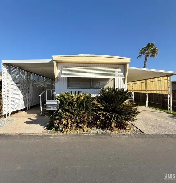 Unlock the potential of this 1-bedroom, 1-bathroom mobile home located in a friendly senior community. The open-concept kitchen and living room provide a great foundation for comfortable living, while the additional room with a desk space and large closet offers versatility. Outside, you'll find a spacious backyard featuring three sheds and mature lemon and orange trees, perfect for gardening or relaxing. A carport with space for two vehicles adds extra convenience. Refrigerator and oven will be included, making it even easier to settle in and start creating your dream space. This home is ready for updates and improvements to make it your own. With some thoughtful renovations, it could become a wonderful retreat for one or two people in a peaceful community. Don't miss out on this great opportunityaffordable living with so much potential!