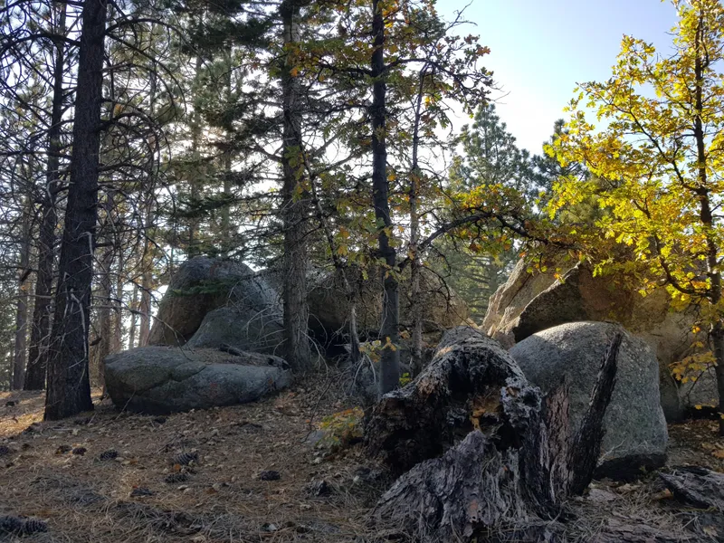 This land is covered in tall pines with easy ability to traverse the land on foot. Underbrush other than Pine Needles is limited. Well placed boulders give the land some very nice character and no doubt some functional use as well.