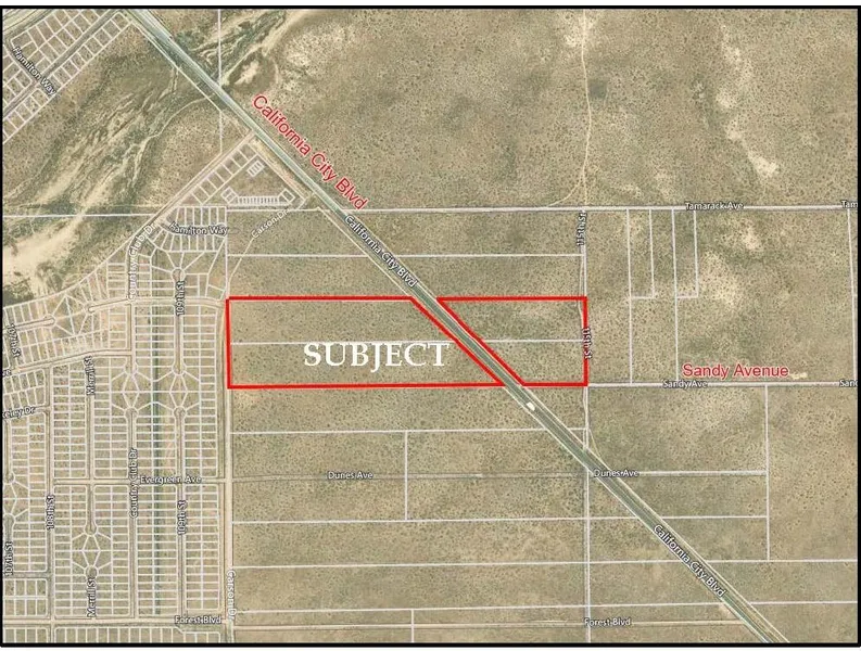 Located on both sides of California City Blvd just outside the city limits. Zoned Estate - 2.5 acre lots with a Mobile Home Combining District. Priced to sell at $104,000!