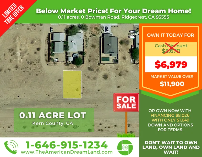 This 0.11-acre lot is located in Ridgecrest, CA. Perfect for making a long-term investment or building your dream home in a subdivision.