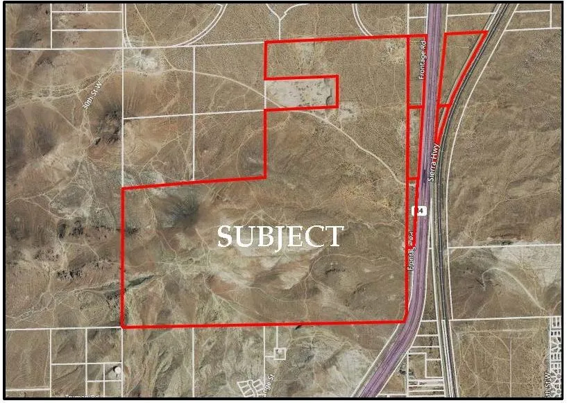 Research Parcel InformationFrom Highway 14, exit Rosamond Blvd then go west to Frontage Road, turn right. The property's southern boundary will be in approximately 1 mile.