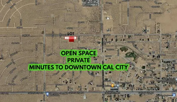 Research Parcel InformationFrom the intersection of California City Boulevard and Neuralia Rd in downtown California City CA, head North on Neuralia Rd to Poppy Boulevard (about 0.5 mi) turn left onto Poppy Boulevard and go 1.3 miles. Lot will be on the left.