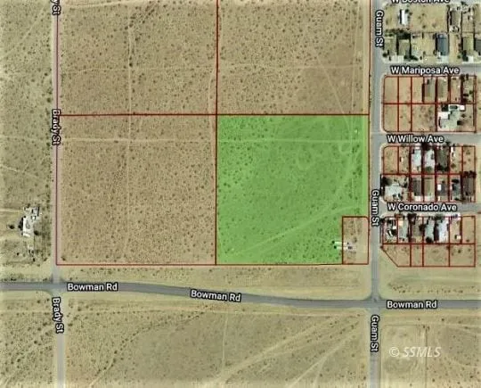 8.37 ACRES JUST AT THE EDGE OF THE RIDGECREST CITY LIMITS! Parcel is located west of Ridgecrest Heights on West Bowman Rd at Guam St. City water. According to IWV Water Dist water meter set up fee is only $5068 as this parcel is part of the Ridgecrest Heights Assessment District. Power can be accessed from power poles on the east side of Guam St according to Edison. Urban Reserve zoning allows for a single family home with an accessory dwelling unit to be built. Animals are also allowed with this zoning. City of Ridgecrest states the parcel can be subdivided depending on the submitted plans. A great location to establish that once in a lifetime stately estate home. Three other neighboring parcels of like size are also for sale. UTILITIES ARE EASILIY ACCESSABLE HERE! DREAM HOME READY!