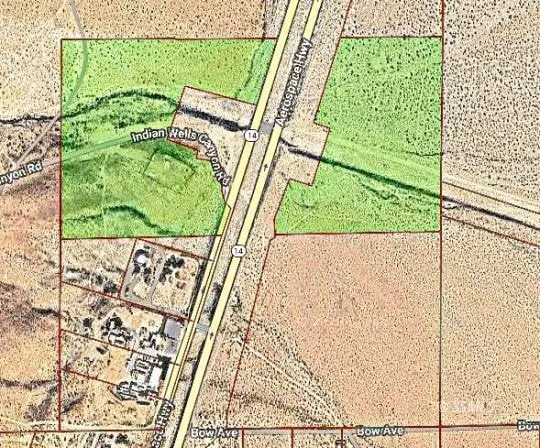 ARTESIAN WELL WATER IS AVAILABLE!! 68,5 ACRES JUST NORTH OF INDIAN WELLS BREWING COMPANY! Parcel sits at the entrance of Indian Well Canyon Road just off Highway 14 and is divided approx. 2/3 to the west and 1/3 to the east of Highway 14. Many flat parking areas for camping and RVs. Possible to set up 100+ camp sites for the entrepreneur spirit. Great area for off-roaders as it is adjacent to The Indian Wells Valley Brewing Co. Trails also connect south to Jawbone Canyon, and directly west to Owens Peak Wilderness. Flood zone is X, 0.2 and AO due to a wash that drains from the west and under Highway 14. 2nd parcel is 4.66 acres just south of the west side property line, APN 064-140-13. This southern parcel acts as buffer between a residential ranch home to the direct southeast. Parcels are partly fenced. According to title records and present owners state there is a water easement from...