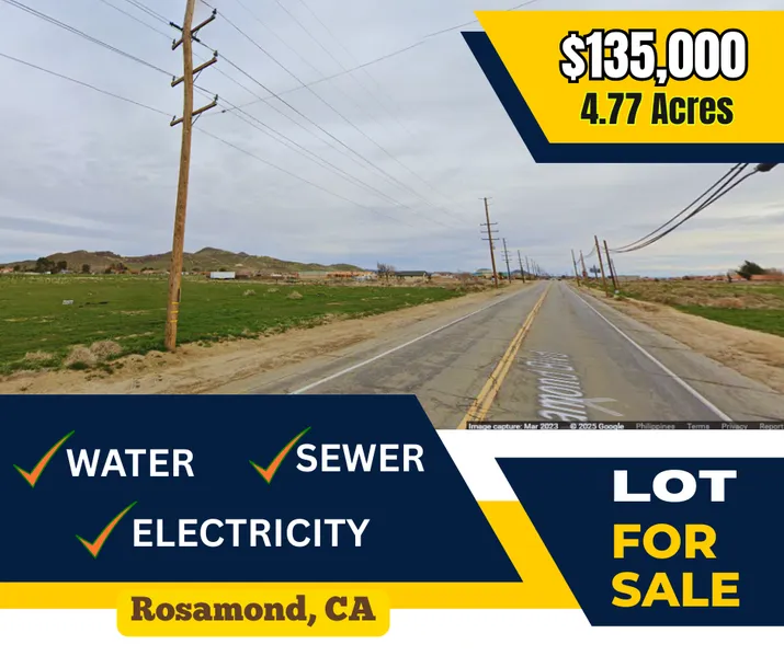 Welcome to an incredible opportunity to own a spacious 4.77-acre lot in the desirable and fast-growing community of Rosamond, Kern County, California. This property is ideally located on W Rosamond Street near 40th Street, offering both convenience and future potential for homeowners, builders, and investors alike.