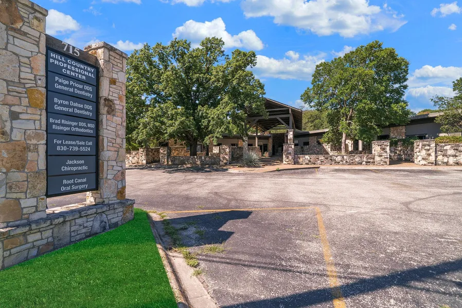A low-walled entry court welcomes you to 1302 sq. ft. office located in the Hill Country Professional Center; conveniently located close to Peterson Regional Medical Center and other dental and medical offices. Inside, a generously sized tile-floored waiting room features a stone accent wall and offers ample space to welcome clients. A frosted sliding glass reception window opens to a roomy, bright reception/bookkeeping area with large window overlooking front entry court. There's a spacious private office with a native stone accent wall and a separate entrance/exit. The 3 exam rooms have plenty of counter/storage space, dual sinks, and large windows looking out to peaceful & private, high-walled garden area. There's a 2-piece bathroom for clients, a private 3-piece bathroom including a shower, and easy-to-care-for tile and laminate flooring throughout. This unit is currently being utilized by a dental practice, but could easily accommodate many professional practices. The building association fee covers water, trash, and exterior landscape maintenance. For the investor, this is an excellent income-producing opportunity to own leasable property.