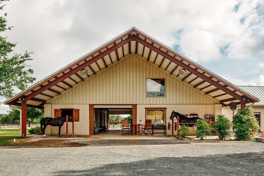 COMMENTS: An estate of rare pedigree, this expansive property has been masterfully crafted to cater to every resident and visitor, including equine. Live water from Bear Creek - a historically reliable water feature - divides the acreage, offering more than 1,800 feet of frontage on both sides. World-class amenities include a professionally designed barn with large stalls and aluminum sliding doors, a large show arena with exceptional footing, as well as multiple turnouts. The gated property also encompasses fenced and cross-fenced fields, where horses are free to roam. The main residence overlooks the property and achieves a rustic, yet elegant, ambiance. Large windows foster an idyllic indoor-outdoor feeling and robust wood accents contribute to a richly appointed interior. Additional accommodations include a guest home perched above the creek, ranch manager facilities towards the rear of the property and a guest apartment. Designed to reconnect you with nature, this equestrian estate is a slice of heaven located just outside of Kerrville.