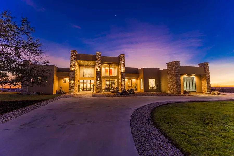 STAR QUALITY ONE STORY CONTEMPORARY IN THE HILLS OF COMFORT, TX - Land your helicopter onsite & step into sleek & minimalist luxury! 28 +/- ac. AG EXEMPT land w/ consummate privacy & endless views. This gated home invites you to house your priceless cars in a collector garage for 12, and LIVE LIFE in perfection on one level, appointed with only the finest. Anchored with marble floors crowned with crystal lighting fixtures, this open concept contemporary is excellent in every way. Easy 5 min off IH-10 & 87.