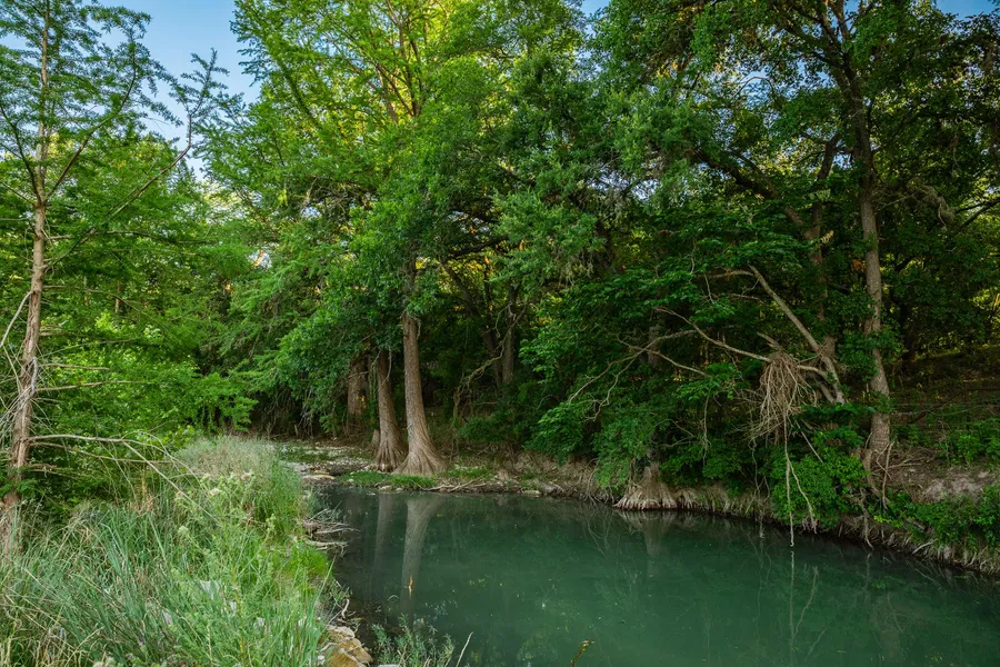 The aquamarine waters of Cypress Creek, which eventually feed into the Guadalupe River, meander through the farm for about of a mile. Towering cypress trees line the banks, crystalline water ripples over moss-covered rocks and pools beckon passersby to stop and splash.