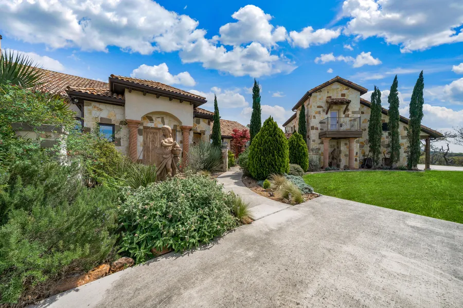 Exceptional offering. Stunning, tile-topped custom stone & stucco home on 110 ag-exempt acres. Quality & craftsmanship evident throughout in the stone, wood & ironwork; no detail overlooked. Each feature of this home enhances the next. Cantera rope columns support arches, gorgeous high ceilings & oversized windows allow each room to enjoy abundant light & views. Open floor plan seamlessly flows front to back, inside & out, creating a luxurious & welcoming home designed for year-round enjoyment. Private Master w/fully screened porch, guest room w/outside access & bright private loft is fun space. Property features a fenced perimeter, 2,000 sf metal building & seasonal springs. Ample space for livestock, wildlife, or add additional dwellings; the possibilities are limitless. Exercise room w/mini-split AC above garage 13.11x11; storage over garage 40x18; patio 51x13.5; Butler Pantry 10x7.10; Laundry 10.2x8 GATE CODES REQUIRED, House Alarm Activated, Call listing agent. Seller retaining 50% of current mineral rights to be included in any offer. All measurements, taxes, age, financial &school data are approx & provided by other sources. Buyer to independently verify all.