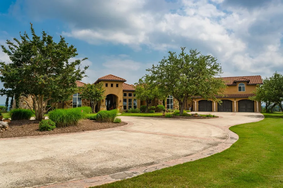 This ranch boast of a beautiful 4 bed 4.5 bath hilltop home offering 360 degree views. The house brags of chiseled edge travertine tile, and hickory floors. There are 10 to 14' ceilings throughout the house, with 19' ceilings in the master bath. It has a lot of storage with huge walk-in closets, butler's pantry, two laundry rooms, and surround sound inside and out. The huge kitchen has knotty alder cabinets, granite counter tops, and KitchenAid appliances, including an 8 burner stove, double oven, refrigerator, ice maker, and trash compactor. The two living areas, full bar, and huge back porch make it a great place to entertain. The large covered back porch offers an amazing SE view of the valley below, and is a great place to relax. The house has a three car garage, tank-less water heater, & 4-zone heating and AC. The land has a rolling terrain that is horse friendly. It is covered in nice hardwoods, native grasses, and is a great place to wonder around on.
