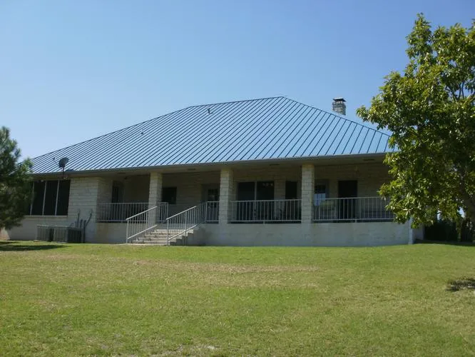 3 bedroom - 3.5 bath rock home with metal roof and long back porch. Property is Ag exempt and perimeter and crossfenced. Pasture has shelter & large tank for your livestock or fishing pleasure. The home boasts a rock fireplace in the living room. Kitchen offers lots and lots of cabinets & a large pantry. The roomy master suite has dual vanities, large soaker tub, & big closet. Next to the home is a large metal garage/workshop.