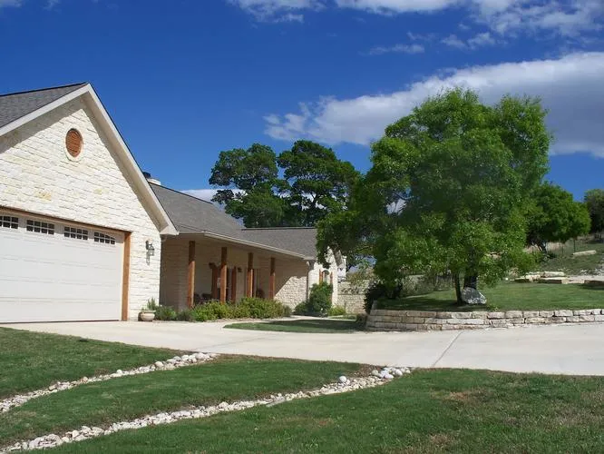 There are many oaks with little cedar on the property. Small horse/implement barn, chicken mansion & pen, and walk in root cellar have all been completed in the last six years. The house has a propane back up generator that supplies electricity to well and house in case of power outage. Yard is fenced & has sprinkler system. The livestock tank dries up in a drought. Lots of whitetail deer and blackbuck antelope come up to the feeder below the ho...