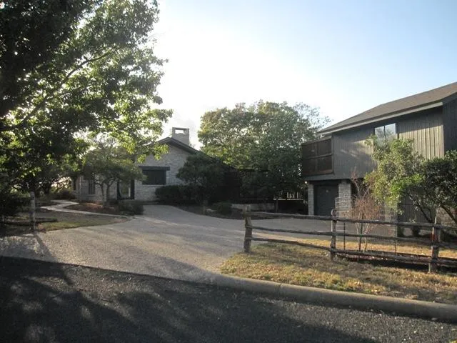 Remarkable home on a private 7 acre setting just 4 miles from Kerrville. One of the great aspects of this home is that it has a perfect mix of styles so that it can easily work for someone who wants a hill country home style to someone who wants a contemporary interior and all in between. The main home is 2 bedroom and 2 bath and boasts large windows in every room to take in the views or the private grounds. Hardwood floors, high ceilings and open fireplace that can be enjoyed from the living or dining areas create the perfect living space. The large kitchen includes a casual eating area, office area, lots of storage space and room for a second refrigerator or freezer. The third bedroom and bath are in a 26 x 18 guest space over the garage. This room could also work as a studio, game room, or office. It has spectacular ranchland and city views, a wood burning stove, and a large wal...