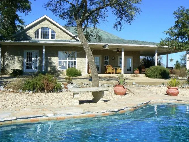 Master suite has 2 vanities & its own patio. Kitchen feature R/O water. Stone fireplace in great room. Solar heated pool, 2500 gallon propane tank. Well is 650' in the trinity w/12,000 gallon water storage tank, water softner. Dish network.