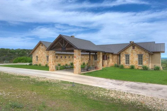 Gorgeous Home w/Breathtaking View on 7 Acres. This home is nestled in the Hill Country with many amazing extras that make it extra special!! Views from every room--3 Fireplaces: Breakfast Area, LR & Patio--Grand Kitchen w/Granite counter tops, Commercial style stove, Double Self-Cleaning Oven, Refrigerator, Wine cooler & Breakfast Area--Separate Formal DR. 2 Living areas--Split BD Floor Plan--Separate Rec Rm on 2nd level--High Ceilings--Security System--Big Covered Patio that's almost like an extra living area w/amazing views!! Too many extras to list them all. New party pavilion large enough to park three cars. It has an elaborate corner fireplaceand adjoins a garage and a half. 2/2 garage living area with off the grid storage.