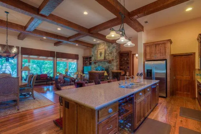 Custom home located in a exquisite location of Stablewood Springs Estates, inside the Stablewood Springs Resort. Completed in 2004, approx. 3740 sq ft in living area & 1500 in covered porches, decks open patios & 3 car garage. These two units (4.5 acres) are located at end of a private cul-de-sac at approx. 1800' elevation overlooking Stablewood lake & surrounding hills. Seller is LREA. Great room is open with 12' beamed ceilings, custom rustic hickory cabinets & chef's kitchen (Viking gas range, 2 dishwashers, 2 sinks & Avanti wine cooler) Main level includes office (4 walls of floor to ceiling bookshelves), master bdrm & bath, guest bdrm w/bath & utility rm. Upstairs: 2 guest bdrms & baths, den/media rm. Enclosed porch & deck with VIEWS!