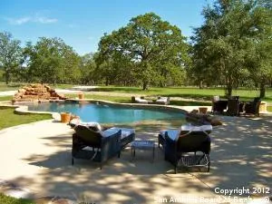 Centrally located in the best that the Hill Country has to offer -- Only 12 mi. to Fredericksburg, 13 mi. to Comfort, 24 mi. to Kerrville, 30 mi. to Boerne, and 60 mi. to San Antonio lies this 29+ ac. estate w/ 3760 sq. ft. rock home with brand new standing seam metal roof overlooking a pool with waterfall, firepit, & terraced patios. Entire property is horse ready with a mix of open and wooded rolling pastures dotted with healthy oaks. Other improvements include a 40'x30' shop (metal building on slab) with a 15' x 40'shed on one side and two roll up drive through doors. There is also a loafing shed and property is cross fenced into multiple pastures. There is a great water well and the back yard has been high fenced to protect the fruit trees and garden area. This upgraded home has stainless appliances and granite kitchen, full wet bar, rock FP, built-ins, a huge office / game room, and...