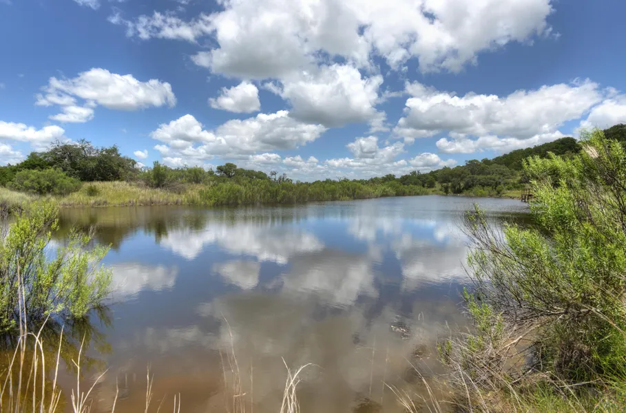DESCRIPTION: Big view property. 100 ac ranch in Camp Verde/Center Point, Texas is nestled in prestigious Hidden Hills in the prettiest part of the Texas Hill Country. Surrounded by diverse hardwoods and native whitetail, the ranch has sloped and level areas with grass, a spring fed creek, waterfall/grotto, stock tank in a pretty bottom with dock and electric. The ranch is fenced with low and high field fence. The highest peak of the ranch has a breathtaking 1870' elevation, 360 degree view from a gorgeous flat top 5 acre building site that has underground utilities, well, implement shed and is prepped for building a new home.