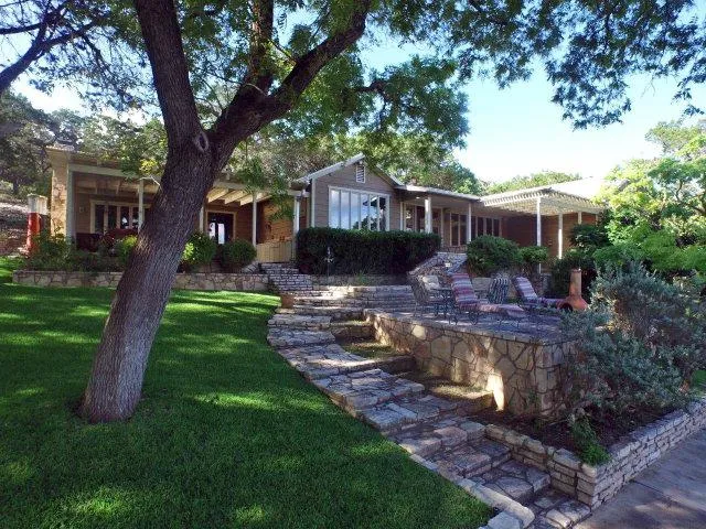 Guadalupe River estate,approx. 800 FT both sides,is set for entertaining,recreation,& relaxation. Main House:stone woodburning fireplace,cathedral ceilings w/exposed trusses,wet bar,entertainment/shelving/cabinet built-in, Saltillo/Traverine/Wood/Berber floors,casement windows allow unobstructed views,gourmet kitchen w/Viking stove,custom cabinetry,stone wall,mosaic detail backsplash,walkin pantry sitting area,private master ste w/exterior pergola(3 total)/patios,2 guest suites,1 exterior entry bed/bath,fenced garden area & greenhouse. Guest House:wood floors,cathedral ceiling,wrap-around porch,wet bar/kitchenette, private porch off bedroom,oversized garage w/storage room.River House: 2Bed/2Bath,sizable party room,Saltillo floors,kitchen,stone woodburng FP,porch. Multi MLS 87746,87747,87749