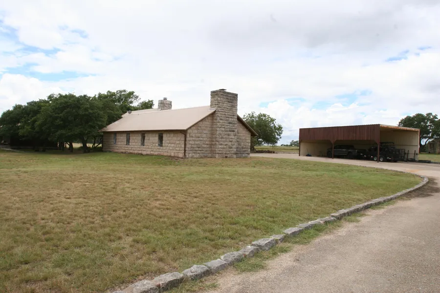 Improvements: The main house is of cut stone and log construction with an open design including Saltillo tile floors and vaulted ceilings with a native stone fireplace. It includes 2 bedrooms, 2 baths plus a loft and large island kitchen. Attached, with entrance through a vintage jail door, is a wonderful game room with wood paneled walls and ceiling, stone fireplace and bar. Note: Some furnishings will convey Please see Broker.