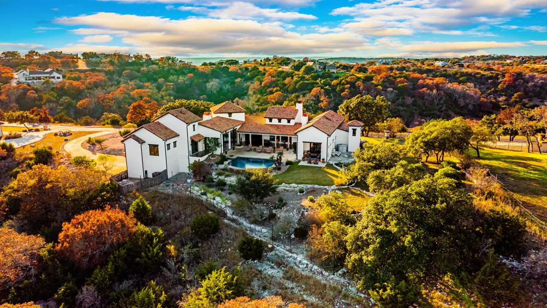 Custom Spanish/Italianate/Mediterranean-style home on a private 4.7 acre estate in The Reserve At Falling Water, one of the premier gated subdivisions in the Hill Country. Superb craftsmanship is evident throughout luxurious custom home designed for gracious, relaxed living and entertaining. No detail overlooked. Gorgeous wood and iron details, stone tiled floors and hand-troweled walls bring rustic yet elegant feel to the open design. Easy flow for living and entertaining. Island kitchen has SS Wolf appliances including 6-burner gas cooktop with pot filler. Walk-in pantry, wet bar with wine cooler and formal dining with fireplace are steps away. Private owners suite feels like an oasis with cozy fireplace and access to both loggia and second covered patio with fireplace, grilling area and wet bar. Rear court provides abundance of covered and open patio living space plus spectacular views of infinity edge pool with waterfall and long range views of autumn colored valley beyond. Ensuite bathrooms ensure owners and guests alike feel at-home, as does the powder room & poolside half bath. Cozy den with spiral staircase to loft. Office and laundry w/planning center, 3-car attached garage, fantastic landscaping- truly too much to list!