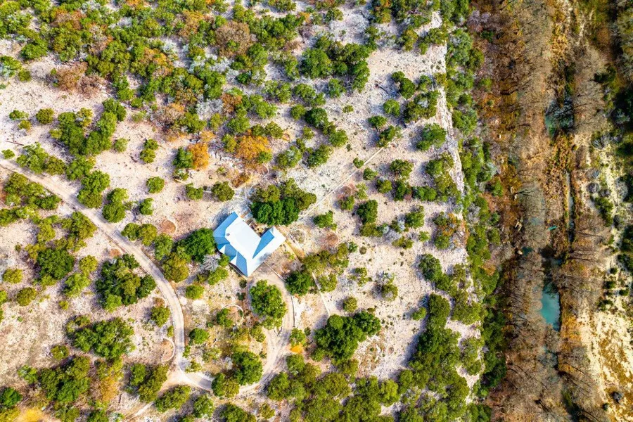 Over 400 feet of Guadalupe River Frontage. Views of the lush river valley greet you from the covered porch & gazebo of this 2186 square feet100% stone exterior home on 17.01 acres. Easy flow through entry hall, formal dining, office, living & kitchen. Enjoy a cozy wood-burning fireplace, high ceiling, large windows with amazing views, and access to over 350 sf of covered porch area. Private owners suite features spacious bedroom with cathedral ceiling, walk-in closet, en-suite bathroom w/ double vanity, shower, separate soaking tub, and convenient laundry area. Split bedroom plan. Two bright secondary bedrooms share guest bath w/shower. Outside, enjoy the shop, fenced garden area and attached 2 car garage. Descend the craftsmans stone pathways & staircase to your private cypress-lined river frontage with caves and ancient rock formations. In addition to your private river frontage, River...
