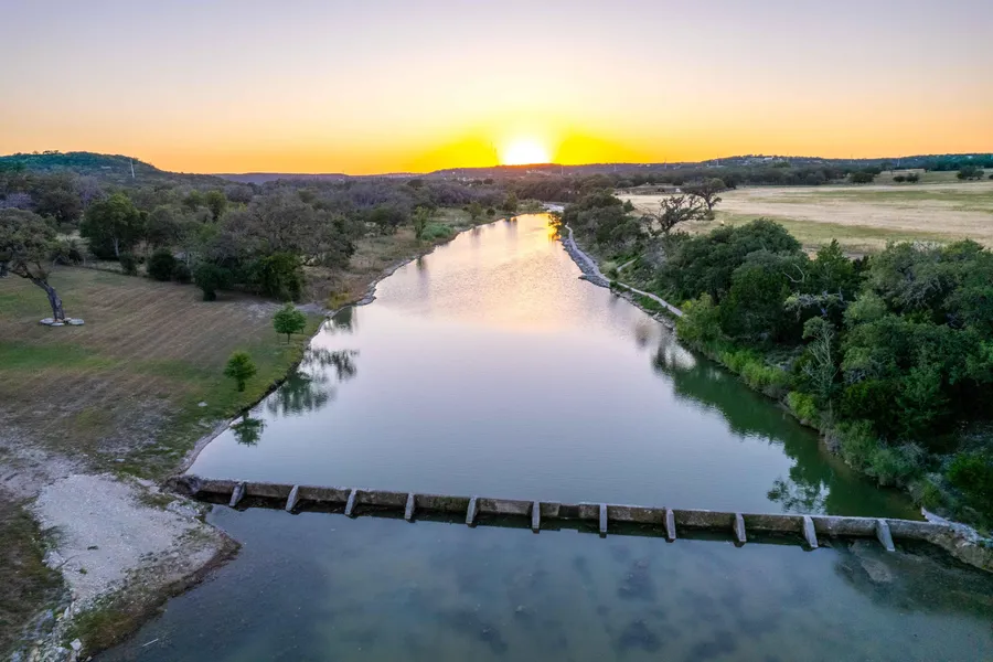 Land: 20 +/- acres of fertile soil, lush grasses, and 400 linear feet of crystal-clear Turtle Creek. The 20 acres takes in both sides of the creek, offering one of the deepest and widest stretches of private water in the hill-country. Turtle Creek is a very strong year round creek and the main tributary to the Guadalupe River. Only 3-4 acres of the property is located inside of the 500 year flood plain, with a gorgeous build site overlooking the blue water. Concrete stairs and sidewalk at the water front make the creek easily accessible, perfect water for kayaking, swimming, and fishing. Up from the waters edge sits a great gathering area with a limestone fire ring and sitting area. The land produces ample coastal grass and is frequently cut and bailed twice a year. A quiet a peaceful setting, the Turtle Creek Oasis is a rare find.
