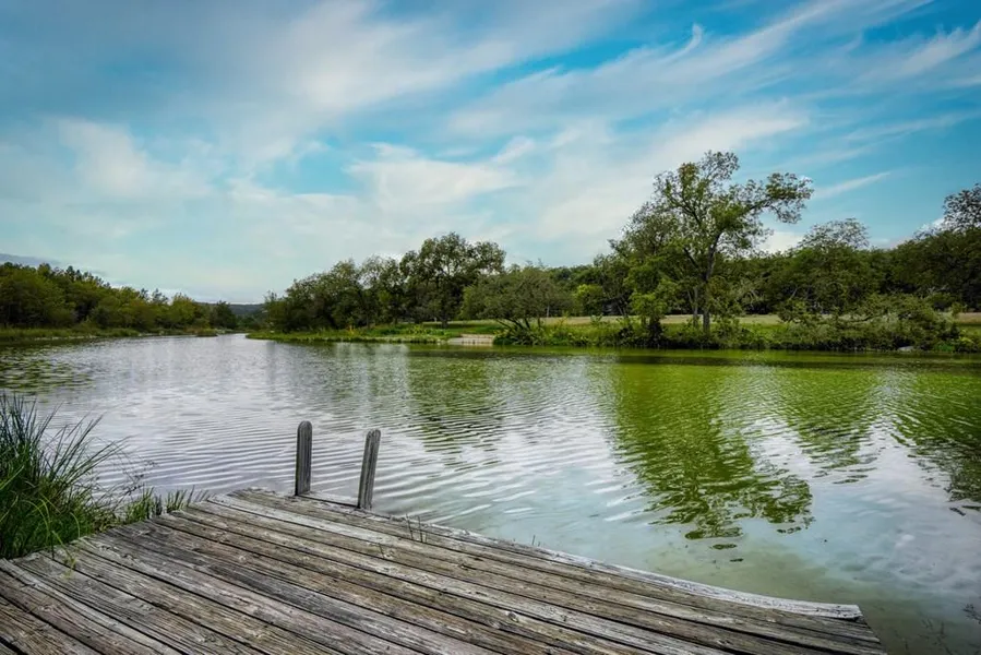Experience the charm of riverfront living on 7.60 acres, spanning three lots with 300' of prime North Fork Guadalupe River frontage. This two-story rustic retreat offers endless opportunities for renovation or redevelopment. The property perfectly captures a laid-back lifestyle, poised for relaxing, picnics & grilling along the river's edge. Whether you seek a year-round haven or a summer escape, this home is ideally positioned to enjoy the river's embrace. For those who value a river view, a spacious 600 sq ft deck runs the width of the home & upstairs, a smaller viewing deck offers the ideal vantage points for taking in the natural beauty of the scenery. This home boasts a durable metal roof and a rustic wood exterior, blending seamlessly with the natural surroundings. A cozy wood-burning fireplace invites you to enjoy cool evenings, adding to the year-round enjoyment. Practical features include a gated entry to the neighborhood, a circle drive w/ covered tandem parking for two cars, and ample storage underneath the home for canoes, kayaks, and inner tubes. This property is a magnificent opportunity to secure your personal retreat, where you can create lasting memories.