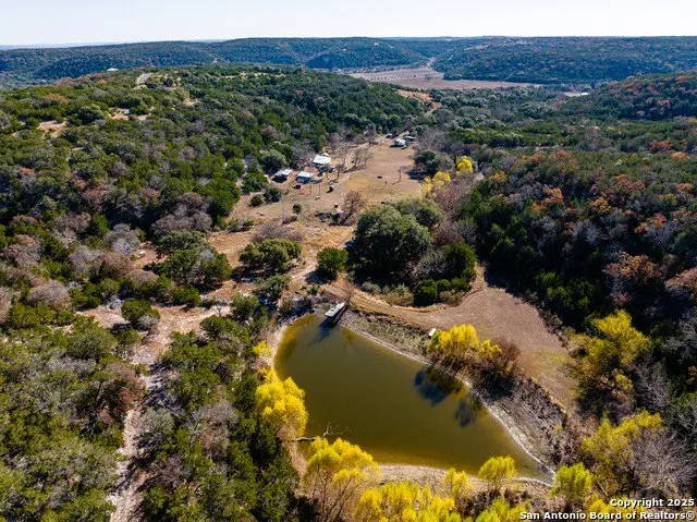 Spring Valley Ranch - A rare, unrestricted Texas Hill Country retreat, on the market for the first time in nearly 50 years! Spanning just under 60 acres, this wildlife-exempt property offers end-of-road privacy, a scenic box canyon that always has a nice breeze, and abundant whitetail deer, turkey, dove, and various bird species. With nearly 200 feet of elevation change (1,986' to 1,812' MSL), it boasts stunning hilltop views and multiple prime sites for building a home, cabins, or observation points. Highlights include a 15-foot-deep, 1-acre pond stocked with bass, catfish, and perch, fed by subsurface springs, and a brand-new 640-foot well, completed in mid-2024. Fully fenced with multiple entrances, the property also features an older rock-style home, ideal as a hunting retreat or cozy residence. High-speed Bandera Electric Internet is available. Conveniently located near Kerrville, Hunt, Bandera, Fredericksburg, and San Antonio, with a nearby airport featuring a 6,000-ft runway for corporate and private jets. This ranch is a true gem-don't miss out on this incredible opportunity!