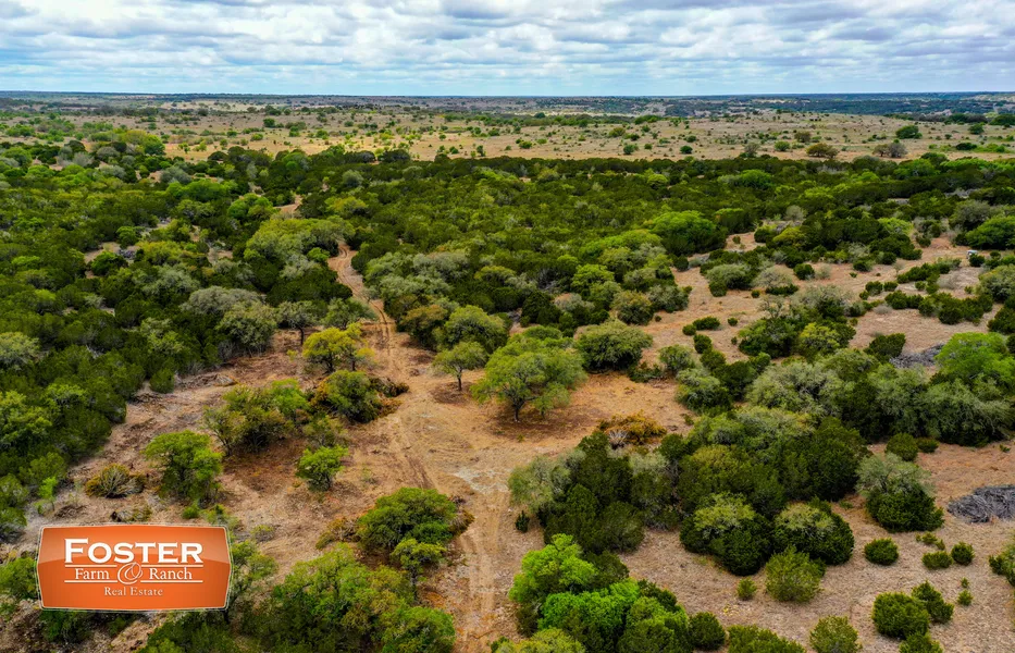 The 101 acres is a mixture of hilltops with distant Hill County views to lower draws with large hardwoods - areas in between have senderos and gentler rolling topography. The property has an elevation range from 2100 - 2240+ FT at the highest points.