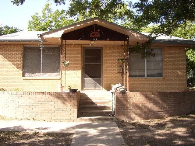 Full brick home situated on pretty, fully fenced lot with nice trees. 2 car detached garage with workshop area. Electromode wall heat and window units for a/c. Nice real wood floors in living, hall and both bedrooms. Tile bath. Laundry room has extra tile shower. Currently on septic but new sewar line runs along east property line. This is a Fannie Mae HomePath Property