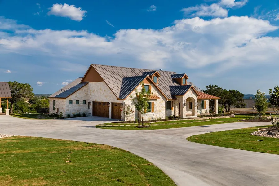 Attention to detail in every aspect of this Hill Country home situated on a corner lot with distant view. The whole property was well-planned and designed, giving it a resort feeling throughout. Custom fixtures, faux paint, wood floors, accent walls and beams and massive granite island are just a few of the finishes on display upon entering the home. Enjoy the southeastern view over the infinity pool from the entire main area and master bedroom. Very functional floor plan connects the master ensuite and walk-in closet to the laundry room. The guest bedrooms are split from the main and each have walk-in closets. Plantation shutters and remote-controlled shades are great added features, as well as the commercial gas cooktop and corner rock fireplaces in the living room and covered porch. Almost every bit of this lot is landscaped for amazing curb appeal. You'll find a 3 car garage attached...