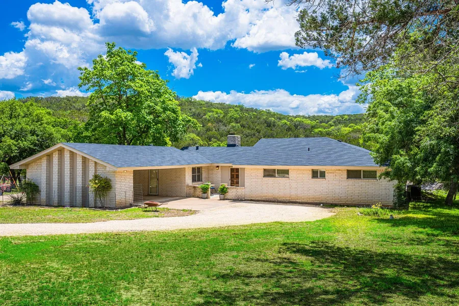 This three bedroom, two bath home is move-in ready and situated on a spacious 1.88-acre lot. It boasts stunning views of the Hill Country and a nearby wet weather creek with a swimming area. Just outside of the city limits, it is conveniently located close to town for easy access to dining and shopping. Relax on the back porch and take in the breathtaking scenery. The Front AC was replaced 5/2022, a new roof was put on in 2021. SELLER IS SELLING HOUSE AS-IS.