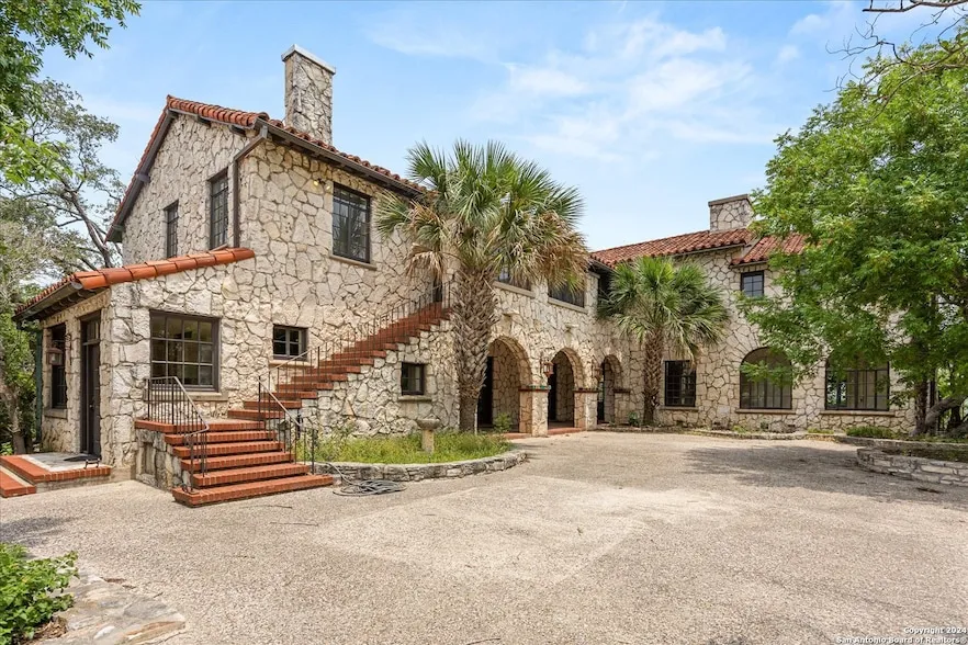 Reimagined 1930s Hilltop Estate Overlooking the Guadalupe River! Discover the captivating history and unparalleled charm of this 1930s hilltop estate, offering sweeping views of the Guadalupe River. Nestled behind a private gate, a winding driveway welcomes you to this architectural masterpiece designed by the renowned Atlee B. Ayers, with an appreciation for San Antonio's cultural heritage. Acquired and lovingly restored by a local businessman and his wife, this estate boasts grand, estate-sized rooms, rich hardwood flooring, multiple cozy fireplaces, and a convenient elevator to the second floor. The upper level hosts the luxurious owner's suite, complete with a spacious closet and a private en-suite bathroom. Three additional bedrooms each provide direct access to the outdoor veranda, featuring stairs that lead to the beautifully landscaped grounds below. The upstairs sitting ro...