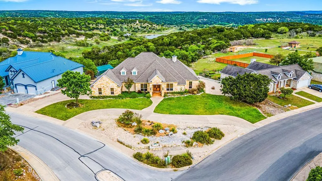 Situated on half an acre corner lot in The Summit with incredible long range views. This Three bedrooms and three bath showplace of 3,414 sq ft with formal dining area, separate study and split bedrooms was the Integrity Homes model for the subdivision. Great quality finishes to appreciate including: Slate flooring in main living area, hard wood flooring in office and master bedroom. Beautiful custom cabinets throughout with central vac system, large utility room, walk in pantry and views for days from the covered 25' porch with outdoor kitchen. Soaring ceilings throughout the home give an amazing feeling of space. Lovely stone gas fireplace in the living room and walls of custom cabinetry throughout. Slide up to the wrap around bar and entertainers delight. The kitchen features granite irregular edge countertops, commercial gas range with double oven, prep sink and bar area give everyone all the room they need. Enjoy the master suite with huge picture windows to take in the view; his and hers closet space, a soaking tub and separate spacious tile shower. Oversize attached three car garage and ample utility room with freezer space round out this beautiful property.